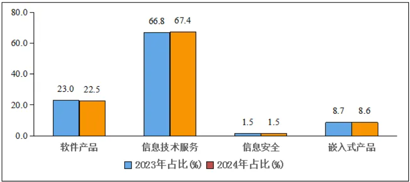 圖4   2023年和2024年1—7月軟件業分類收入占比情況