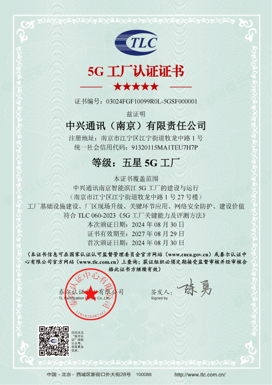 飛象網訊 值此工業和信息化部《5G全連接工廠建設指南》發布兩周年,首個五星5G工廠建設完成——中興通訊南京智能濱江5G工廠(以下簡稱“濱江工廠”),通過中國信息通信研究院(以下簡稱“中國信通院”)泰爾認證中心認證,成為5G技術與電子設備制造業深度融合與全面應用的新標桿。