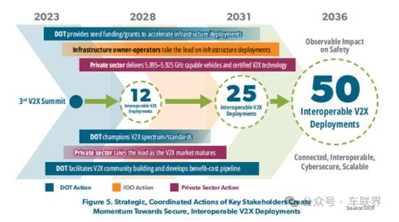目前,由中國主導的C-V2X車聯網技術,已經成為全球車聯網唯一事實標準,正在獲得越來越多的國家和地區支持,并得到快速推廣應用,迎來全球規模化落地重要階段。2023年12月,韓國表示,將采用C-V2X車聯網部署新一代智能交通系統;今年8月,美國正式發布C-V2X車聯網國家部署計劃,計劃在12年時間內,實現C-V2X車聯網在高速公路100%覆蓋,全國路口75%覆蓋。