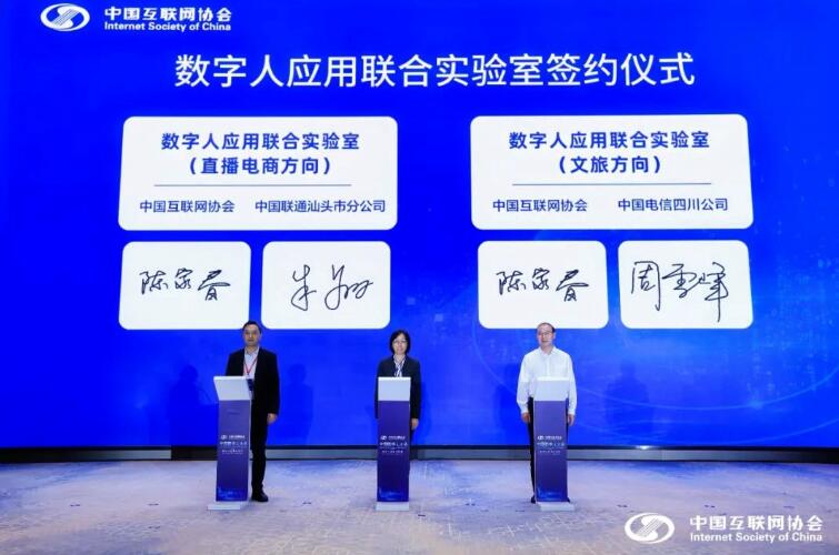 會上舉辦了首批數字人應用聯合實驗室簽約儀式,中國互聯網協會與中國電信四川公司簽約文旅數字人應用聯合實驗室,與中國聯通汕頭市分公司簽約電商直播數字人應用聯合實驗室。數字人應用實驗“區域行”系列活動(首場)在北京市海淀區啟動。