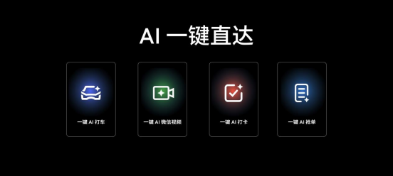 通過(guò)多功能 AI 按鍵,可快速實(shí)現(xiàn)包括一鍵搜索、一鍵打車(chē)、一鍵打卡、一鍵微信視頻以及自定義使用場(chǎng)景在內(nèi)的多種實(shí)用好用 AI 功能,只需一鍵,即刻開(kāi)啟智慧 AI 新生活。