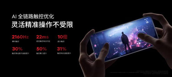 而至高 144Hz 高刷新率和 1-120Hz 自適應(yīng)高刷技術(shù)的加持,使得用戶可根據(jù)顯示內(nèi)容動(dòng)態(tài)調(diào)整手機(jī)屏幕刷新率。搭配全面優(yōu)化的 AI 全鏈路觸控技術(shù),響應(yīng)速度提升 50%,同時(shí)達(dá)到 10 倍超分觸控體驗(yàn),通過(guò)精細(xì)的觸摸分辨率增強(qiáng),實(shí)現(xiàn)更加精準(zhǔn)和靈敏的操作體驗(yàn)。
