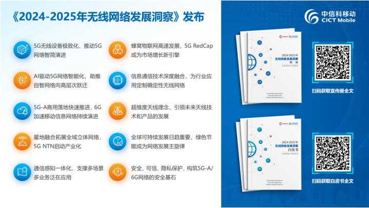 此外,中信科移動聯合無線移動通信全國重點實驗室、移動通信及車聯網國家工程研究中心在PT展現場重磅發布《2024-2025年無線網絡發展洞察白皮書》,總結了無線網絡發展情況和重要變化,期待與學術界和產業界伙伴合作,攜手打造精品無線網絡,共創繁榮社會價值。