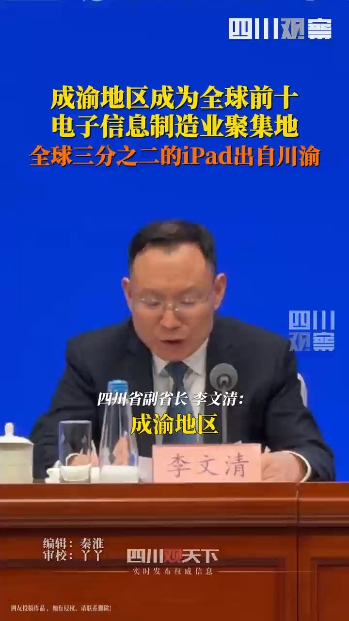 發布會上,在談及兩地產業發展時,四川省副省長李文清分享了一組數據:“目前,全球 2/3 的 iPad、近 8000 萬臺筆記本電腦、超 1 億臺智能手機都出自川渝。”他表示,電子信息產業是川渝創新實力最強、產業基礎最好的支柱產業,近年來兩省市圍繞集成電路、新型顯示、智能終端等加快補鏈強鏈,成渝地區一躍成為全球前十電子信息制造業聚集地。