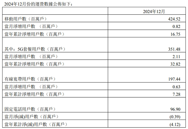 飛象網訊(致新/文)12月20日消息,中國電信昨日公布2024年12月份運營數據。當月,中國電信移動用戶數凈增82萬戶,移動用戶數累計4.2452億戶;當月5G套餐用戶凈增211萬戶,5G套餐用戶累計3.5148億戶。