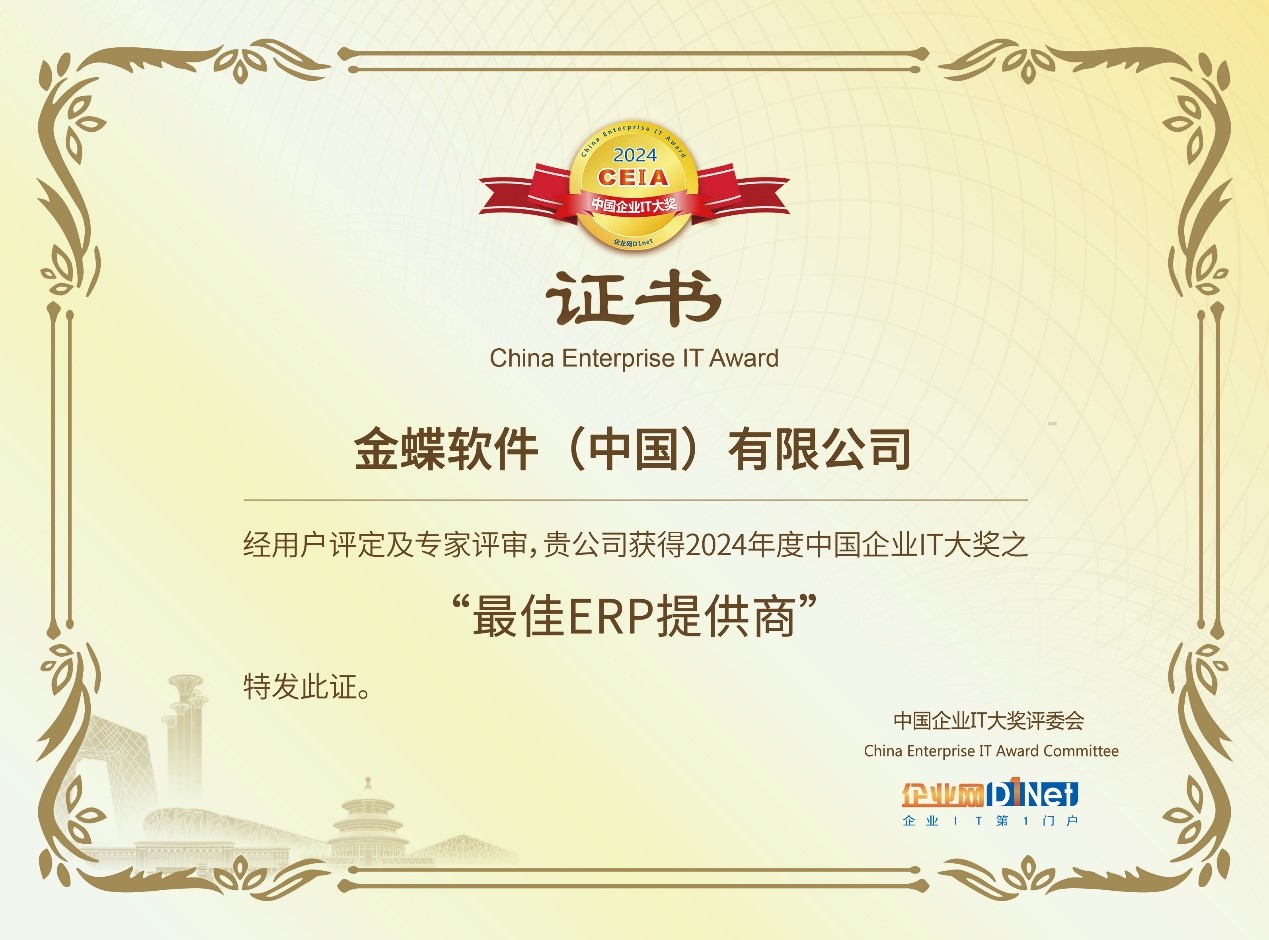 經(jīng)過嚴(yán)格篩選和專業(yè)評(píng)估,金蝶獲評(píng)“最佳ERP提供商”獎(jiǎng)。