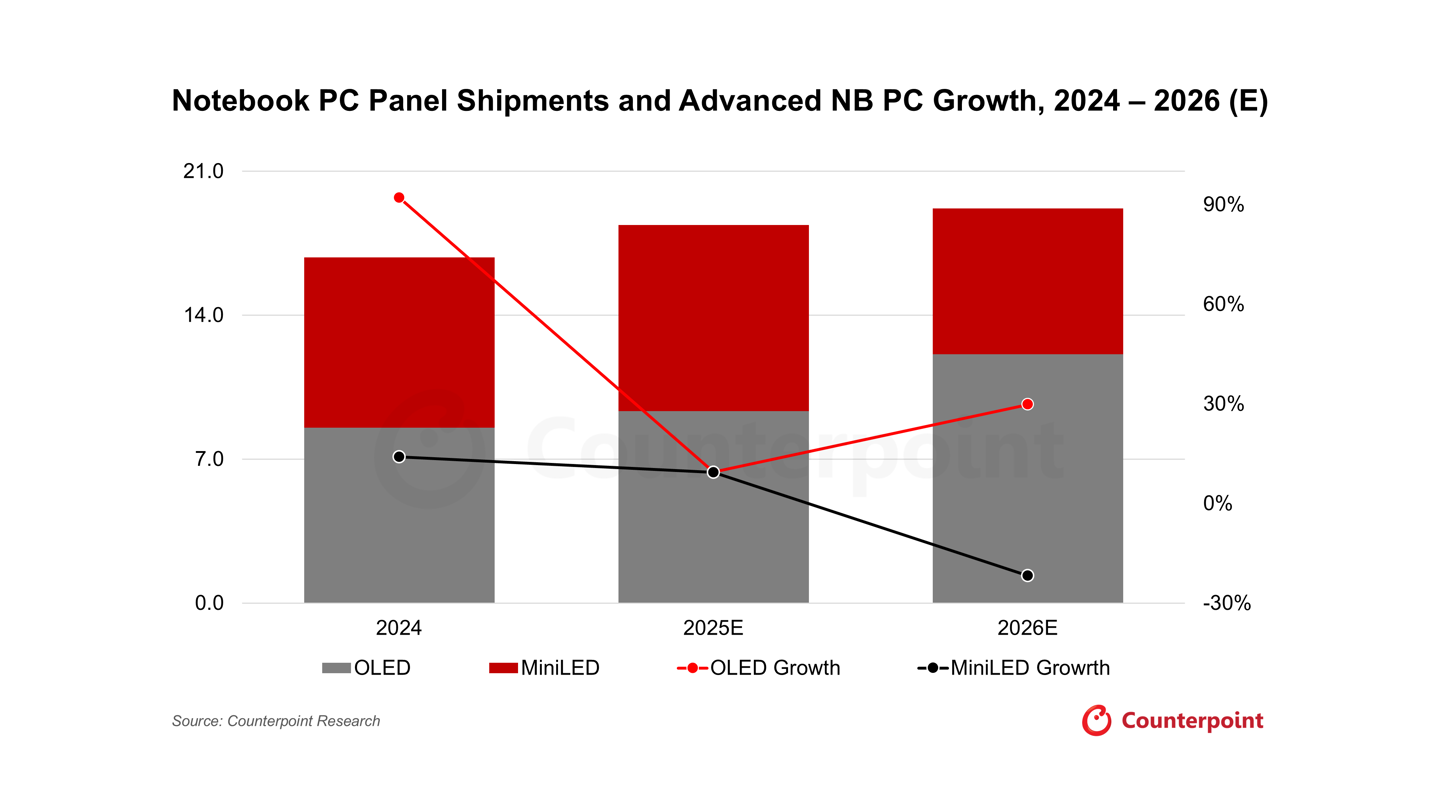 展望 2026 年,隨著成本效率的提升以及更多品牌拓展高端產品線,OLED 筆記本電腦的市場份額預計將持續增長。