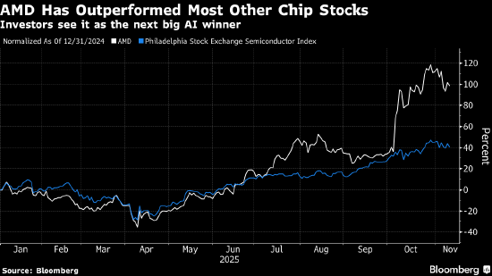 AMD向投資者更新其長期展望,正值外界越來越擔心用于人工智能工作的新型計算機系統的巨額投入難以維持當前的高位。受益于與OpenAI和甲骨文等公司簽署的協議,這家芯片制造商的股價今年已大約上漲了一倍。這些交易驗證了AMD產品的質量,也表明其技術有能力從投入到新數據中心的數以百億計美元中分得一杯羹。