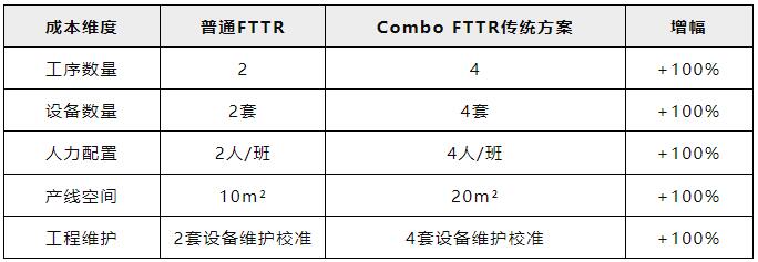 單模FTTR ONU口僅需2道工序。Combo FTTR因雙模式都需要獨立測試,工序暴增至4步。工序數(shù)量增加2個,線體長度同步增加4米以上,配套的質(zhì)檢、工藝管理等復(fù)雜度成倍增加,影響不容小覷。