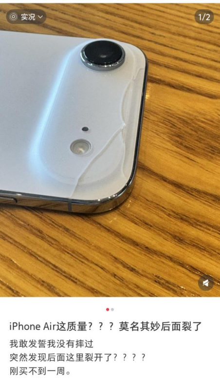 不過,主打輕薄的iPhone Air的用戶反饋也兩極分化。在社交媒體上,有用戶總結(jié)稱,手感確實(shí)很好,但為了輕薄也犧牲了很多配置,比如只有單揚(yáng)聲器,音質(zhì)差、音量小;電池小、續(xù)航一般。另外,還有多位用戶吐槽,iPhone Air的后蓋比較脆弱,在沒有經(jīng)受很大磕碰的情況下出現(xiàn)了后蓋碎裂。