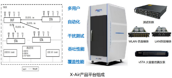 信而泰針對WiFi7高吞吐、低時延、大并發(fā)、抗干擾、高可靠等技術特性自主研發(fā)了X-Air系列產(chǎn)品,其是面向訪問接入點(AP)、家庭網(wǎng)關及 WLAN 系統(tǒng)的專業(yè)測試設備,憑借真實多終端模擬與真實4-7 層應用模擬,可以精準衡量WLAN設備的基本性能、功能完整性與長期穩(wěn)定性。
