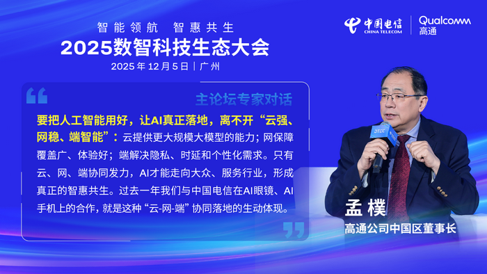 2025電信大會開幕,高通孟樸分享AI趨勢:端-邊-云協同發展,推動AI普惠落地