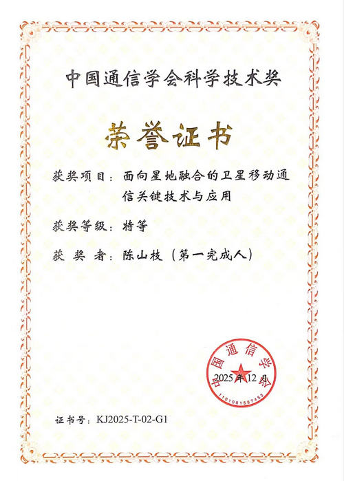 飛象網(wǎng)訊 12月6日,在“2025中國通信學會學術年會”上發(fā)布科學技術獎并舉行頒獎儀式,中國信息通信科技集團有限公司、中信科移動通信技術股份有限公司、大唐移動通信設備有限公司、中國信息通信研究院、宸芯科技股份有限公司、北京郵電大學聯(lián)合完成的“面向星地融合的衛(wèi)星移動通信關鍵技術與應用” 獲中國通信學會2025年度科學技術特等獎。