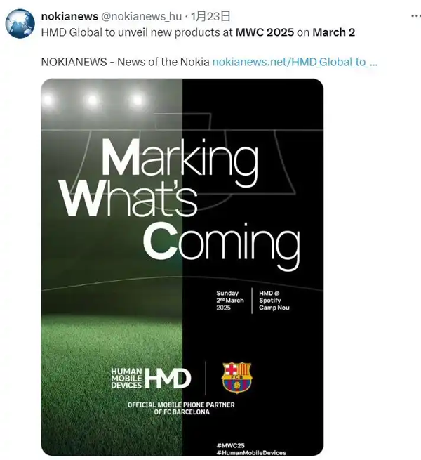 HMD Global成為巴塞羅那合作伙伴,將在MWC 2025上推出新品!