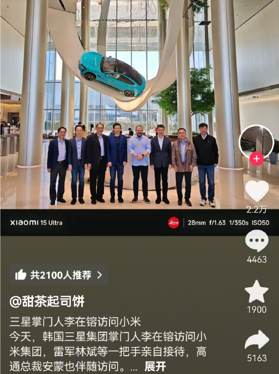 三星李在镕、高通安蒙到訪小米汽車工廠,雷軍接見合影曝光