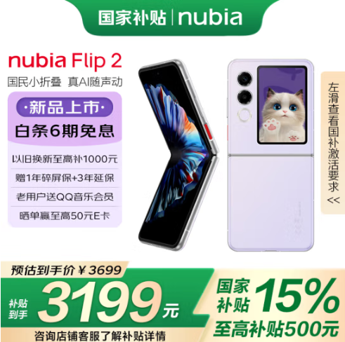 其中,努比亞Flip 2基于AI Together理念混合多家模型系統,用戶說出需求后手機自動選擇最優專家大模型來應答處理;支持外屏超級AI萌寵,帶來超擬人語調嗨聊、百科知識問答、智能語音交互等功能,有趣又實用。努比亞Flip 2 12GB+256GB京東原價3699元,享受國家補貼500元,到手價3199元。