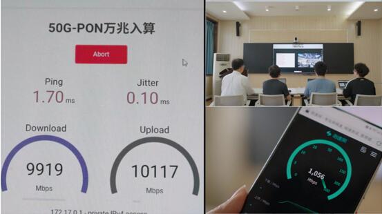 科研場景提質增效:在水資源工程與調度全國重點實驗室,50G-PON萬兆光網有力支撐高性能科研實驗海量數據的實時采集與極速傳輸,保障科研大模型數據極速入算武漢大學超算中心,為分布式計算和人工智能大模型拉遠訓練/推理提供堅實的網絡支持。相較于傳統千兆網絡,50G-PON萬兆光網入算效率上提升10倍,上行與下行峰值速率均突破了萬兆大關,時延低于0.1毫秒。