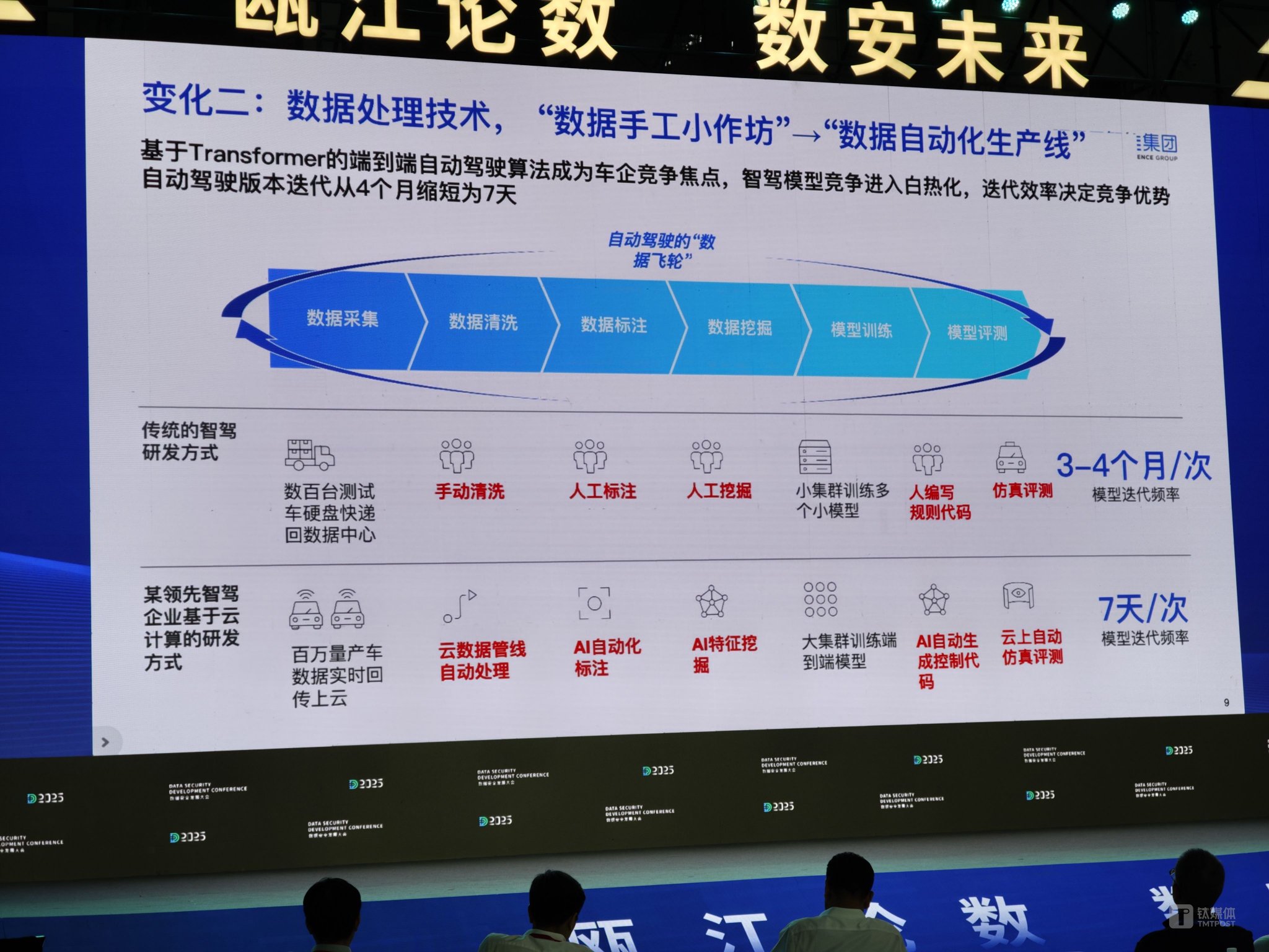 阿里云智能集團副總裁安筱鵬表示,今天對自動駕駛的數據采集、數據清洗、數據標注、數據挖掘、流程訓練、模型評測,已經從傳統手動清洗、人工標注、人工挖掘,升級到基于AI大模型的自動化標注、挖掘,使得自動駕駛算法迭代從4個月縮短到7天,效率提升數(很多)倍。