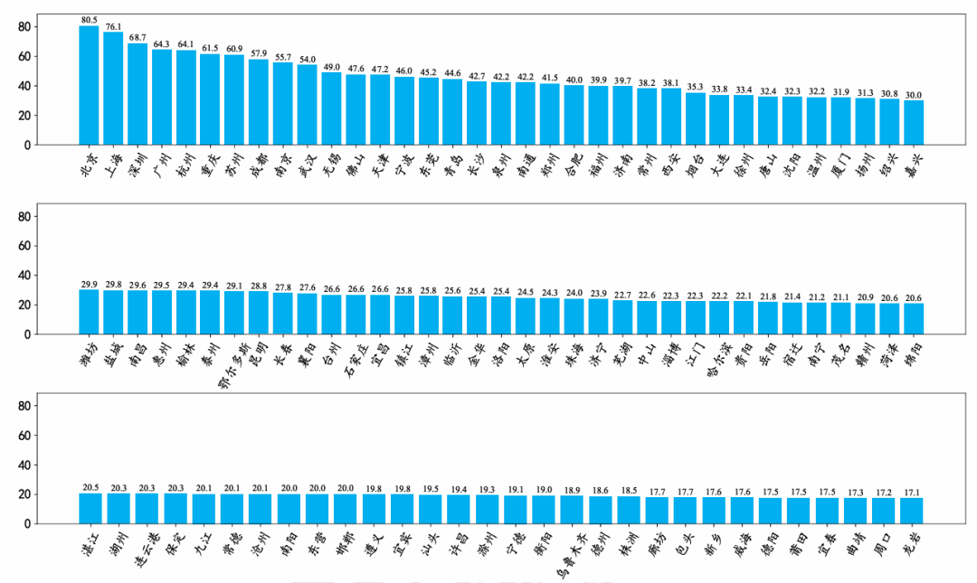 圖:全國100個主要城市工業互聯網發展指數情況