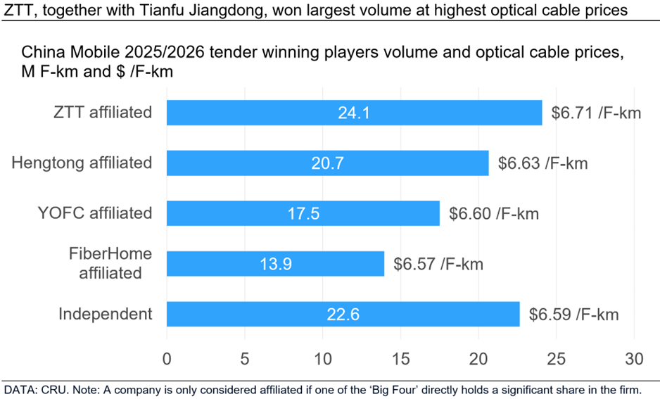 CRU研究:2025/2026年中國移動光纜招標結果發布