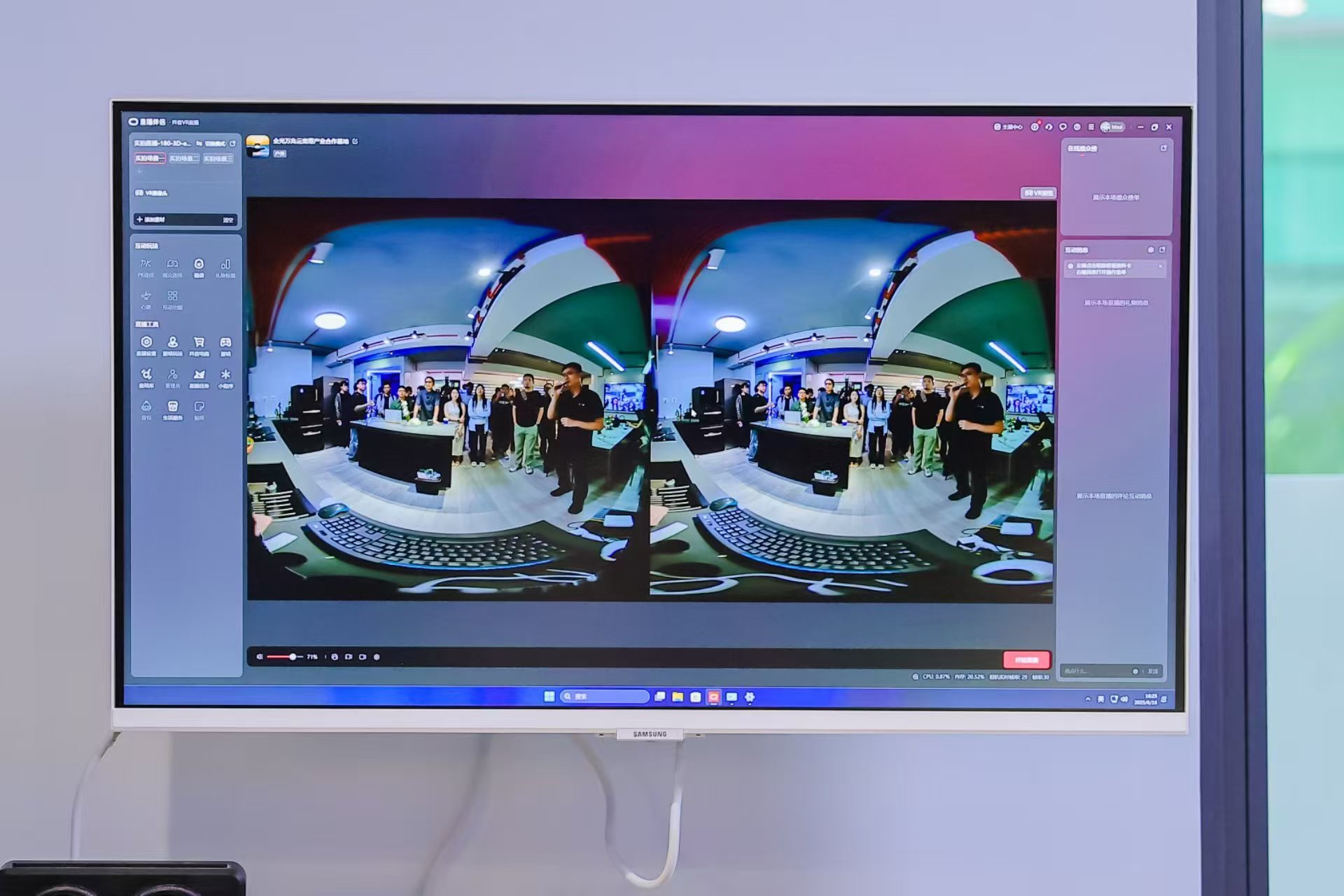 現在個人和小微企業做網絡直播很常見,但是3D直播對網絡要求非常高,一般光寬帶無法支撐。記者此次在現場見到了基于F5G-A萬兆寬帶的超高清3D直播演示,一臺專業的雙目3D相機負責實時捕捉和生成8K立體畫面,數據通過萬兆帶寬傳到云端進行處理和分發,觀眾可以用PAD或VR頭盔來觀看。變換角度和方向,可以看到仿若在現場的視覺效果。