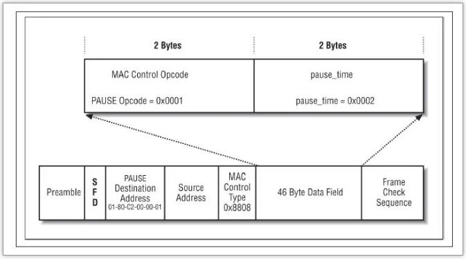 • 暫停的持續(xù)時間由報文中的Pause Time字段指定(單位是512 bit time,可換算成時間)。