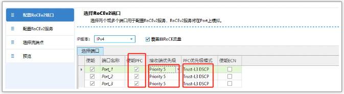 1. 占用3個端口,port1和port2用于發(fā)送QP流量,port3用于接收,使用RoCEv2向?qū)В鼓躊FC,以Priority 5 為例;