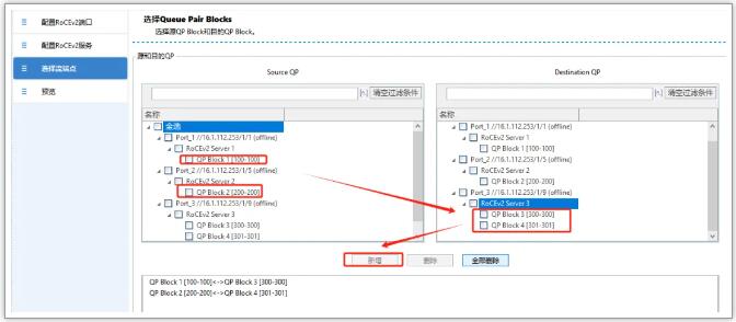 3. 選擇流端點:勾選上server1和server2打向server3的QP block,點擊完成即可;