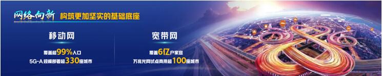 推進移動網絡從5G到5G-A、寬帶網絡從千兆到萬兆的向新升級,以更廣的連接、更快的速率、更寬的上行、更低的時延、更準的感知,聯接AI深入更多場景,催生更多應用。