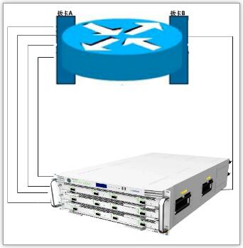 4. 將性能測試儀的端口分別與被測設備的板卡A和B相連。