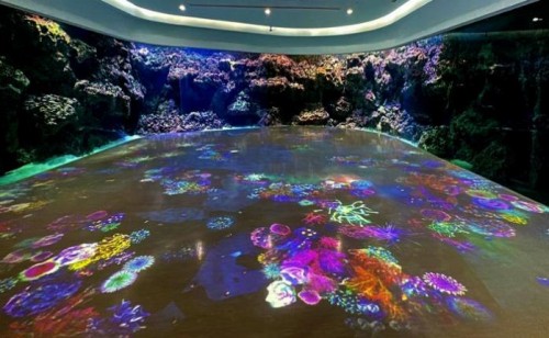 “Ocean of Light潛浸海洋”的其中一個亮點是弧形墻壁上的沉浸式投影