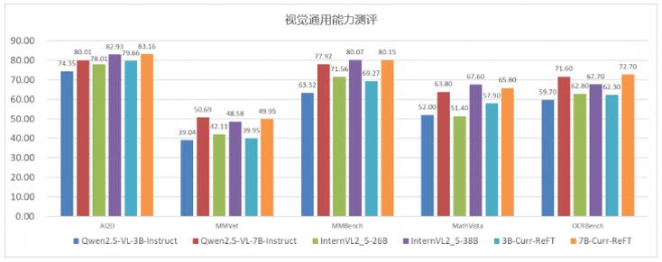 實測數據顯示,3B-Curr-ReFT在AI2D數學推理測試中準確率達83%,超越26B參數的InternVL-26B;7B版本在MathVista測評中得分92.2%,較基礎模型提升33.6個百分點!癈urr-ReFT的核心是讓模型像人類學習一樣循序漸進!奔夹g專家表示,該范式將任務分為二元決策、多項選擇、開放式回答三階段,配合GPT-4-O評分的拒絕采樣機制,既突破了小模型的“能力瓶頸墻”,又避免了基礎能力退化。這種輕量化方案特別適用于智能終端、邊緣計算等資源受限場景。