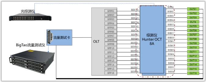 支持16個(gè)DUT整機(jī)功能測(cè)試&流量測(cè)試&功率校驗(yàn)并行測(cè)試;單機(jī)框可提供高達(dá)96個(gè)流量端口(任意速率組合),測(cè)試環(huán)境更簡潔, Tx/Rx功率防偏校驗(yàn)不增加流量工位測(cè)試時(shí)間,可同時(shí)有效攔截DUT的Tx/Rx功率偏移,否則有漏測(cè)風(fēng)險(xiǎn)。