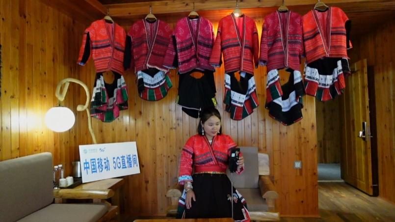 在“龍脊梯田”景區(qū)內(nèi)的大寨村壯界組,舞燕虹雲(yún)酒店老板天剛亮就開啟了線上直播,向人們展示晨霧中的梯田美景,不時回復粉絲的提問,手機屏幕上點贊、咨詢預訂的留言不斷滾動。很難想象在偏僻山鄉(xiāng)能有如此流暢的互動直播效果,而這完全得益于村里全覆蓋的中國移動5G網(wǎng)絡。