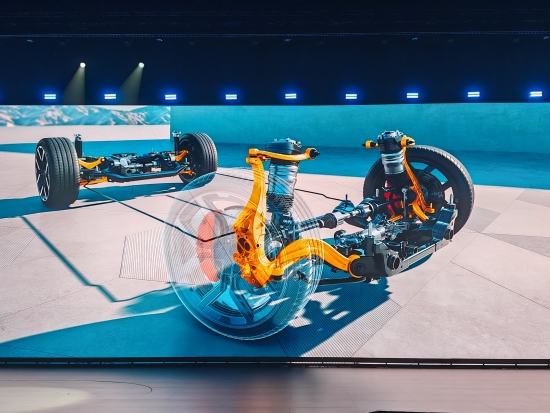 全新小鵬P7整車采用與超跑相同的中置電驅布局架構,軸間質量占整車質量的81%,重心高度440mm,提升操控穩定性。同時,新車配備雙腔空氣懸架與智能可變阻尼減震器,日常舒適與運動操控隨時切換。