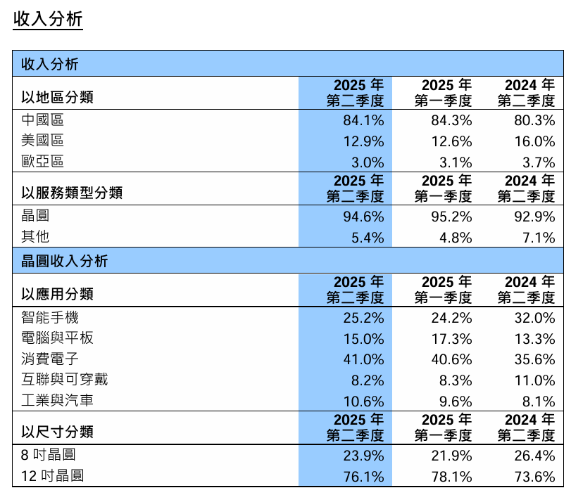 二季度,公司整體實現銷售收入 22.09 億美元(IT 之家注:現匯率約合 158.74 億元人民幣),環比下降 1.7%,同比增長 16.2%;毛利率為 20.4%,環比下降 2.1 個百分點;產能利用率 92.5%,環比增長了 2.9 個百分點。
