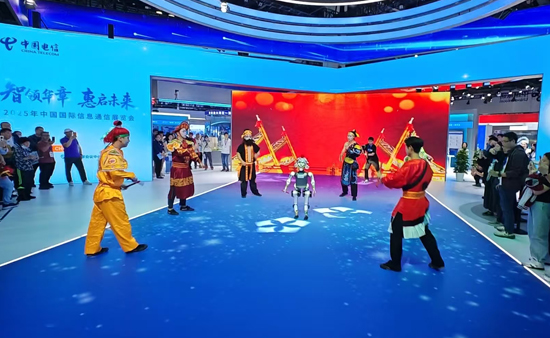 中國電信展臺,一臺具身智能機器人與人類舞者共同演繹了充滿嶺南特色的英歌舞。機器人動作精準,與人類配合默契。這背后是中國電信5G-A超低時延網絡、云計算與邊緣計算能力,保障了海量感知數據的傳輸與AI的實時決策控制。