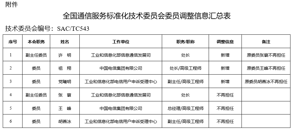 飛象網(wǎng)訊(致新/文)1月23日消息,工信部科技司表示,根據(jù)工作需要,有關(guān)單位提出了全國(guó)通信服務(wù)標(biāo)準(zhǔn)化技術(shù)委員會(huì)委員調(diào)整。為進(jìn)一步聽(tīng)取各方意見(jiàn),現(xiàn)將委員調(diào)整信息予以公示。如有不同意見(jiàn),請(qǐng)?jiān)诠酒陂g將意見(jiàn)反饋至我司,電子版請(qǐng)發(fā)送至KJBZ@miit.gov.cn(郵件主題標(biāo)明:全國(guó)通信服務(wù)標(biāo)準(zhǔn)化技術(shù)委員會(huì)委員調(diào)整公示反饋)。