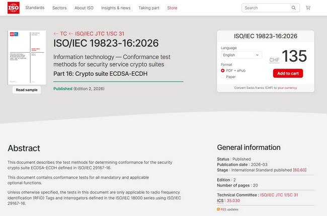 圖:ISO網站截圖—ISO/IEC 19823-16:2026發布