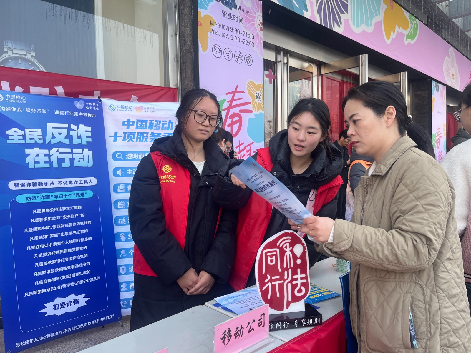 南通移動工作人員還走入三星各鄉(xiāng)鎮(zhèn),對已經找到工作的務工人員科普防詐騙知識,面對異常情況時做到不輕信、不受騙,提醒他們要警惕以“短信中獎”“網絡貸款”為名的騙局,更不可將信息資料告知他人,保障錢包安全,進一步提高防騙防詐能力。