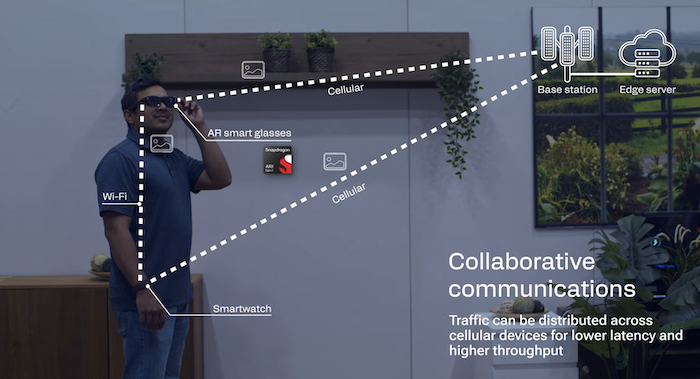這項能力目前最大的受益者可能是AR眼鏡,由于此類設(shè)備本身體積較小、電池容量有限,難以獨自承擔(dān)所有的數(shù)據(jù)傳輸任務(wù),而通過Wi-Fi與智能手機連接,可將部分數(shù)據(jù)流量經(jīng)由手表的蜂窩連接傳送至基站。同理,通過AR眼鏡與手機的配合,同樣可以帶來更加高帶寬、低延遲的聯(lián)網(wǎng)體驗。