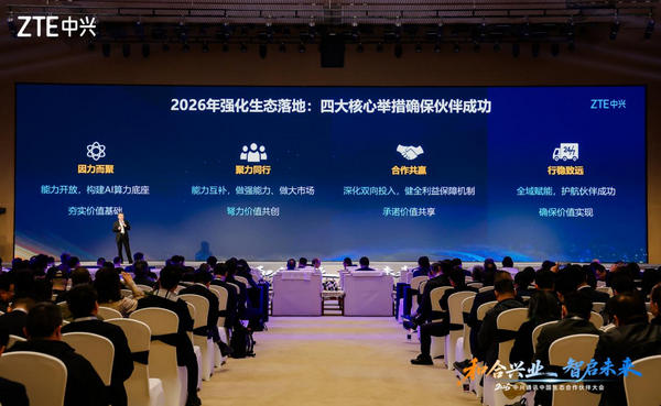 針對 2026 年生態(tài)發(fā)展重點,王翔向合作伙伴明確了核心方向:圍繞 “開能力、強合作、共利益、優(yōu)賦能” 四大核心舉措,持續(xù)深化與生態(tài)伙伴的全方位合作。其中,“開能力” 聚焦核心能力層、基礎設施層、能力平臺層、應用層、終端層,全面開源開放核心能力,依托架構級協同優(yōu)化優(yōu)勢,提升系統兼容性與性能,與伙伴共建開放、高效的 AI 算力底座;“強合作” 注重以客戶為中心,整合產業(yè)鏈的優(yōu)質生態(tài)資源,與伙伴能力互補,加強與伙伴在“技術-市場”的雙向聯動,做強AI全棧全場景能力,深耕“6大重點行業(yè)+30 個垂直子行業(yè)+240 個細分場景”市場。;“共利益” 即深化雙向投入,健全利益保障機制,打造更多元的合作模式,共享更大的商機資源池,提供更多的利益空間,優(yōu)化更好的合作機制;“優(yōu)賦能” 則圍繞技術、營銷、培訓、數字化服務四大維度,為伙伴提供系統性的全域賦能,助力伙伴提升核心能力與市場競爭力,同時全面升級一站式數字化服務體系,基于Co-Claw ,為伙伴提供更 “智”“惠” 的智能助手,全面向市場釋放 “中興 + 伙伴” 的協同合力。