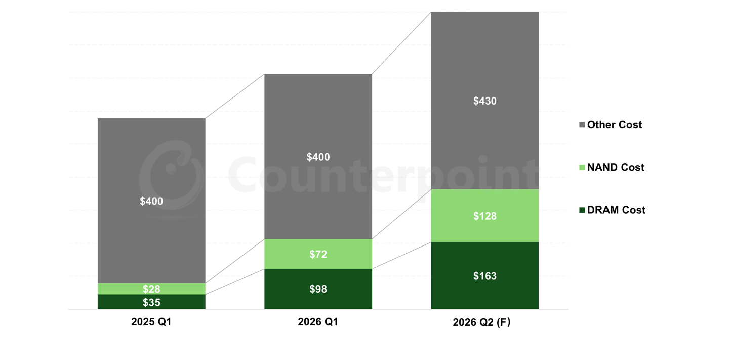 最終,高端智能手機在 2026Q2 末的物料成本將較 2025Q1 增加超過 150 美元,這可能導致最終零售價上漲超過 200 美元(現匯率約合 1377 元人民幣)。
