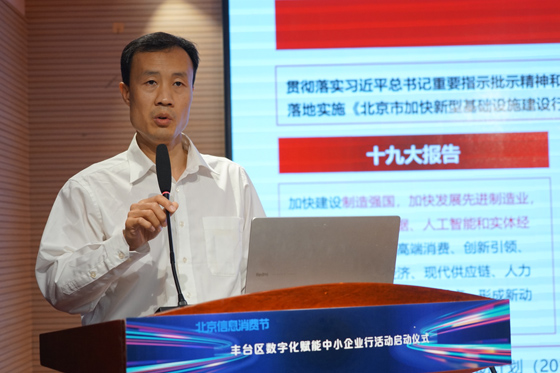 2020年9月21日,由北京市經(jīng)濟(jì)和信息化局、北京市商務(wù)局、豐臺(tái)區(qū)政府聯(lián)合主辦,豐臺(tái)區(qū)科學(xué)技術(shù)和信息化局、北京軟件與信息服務(wù)業(yè)促進(jìn)中心、中關(guān)村現(xiàn)代信息消費(fèi)應(yīng)用產(chǎn)業(yè)技術(shù)聯(lián)盟、中國(guó)信息通信研究院智能+學(xué)院、北京工業(yè)互聯(lián)網(wǎng)技術(shù)創(chuàng)新與產(chǎn)業(yè)發(fā)展聯(lián)盟共同承辦的北京信息消費(fèi)節(jié)系列活動(dòng)之豐臺(tái)區(qū)數(shù)字化賦能中小企業(yè)行活動(dòng)啟動(dòng)儀式暨豐臺(tái)區(qū)“新基建”“新場(chǎng)景”政策宣講會(huì)成功舉行。