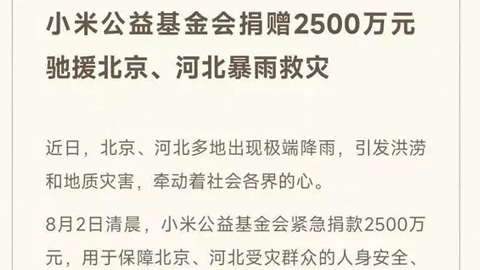 螞蟻集團捐贈 2000 萬元馳援北京河北防汛救災