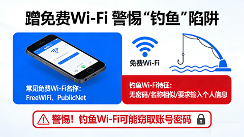 隨手連接免費Wi-Fi刷新聞、聊工作……這種看似平常的舉動,卻可能暗藏危機。公共場所的免費Wi-Fi很可能是不法分子精心布置的“釣魚”陷阱。他們通過設置免費Wi-Fi監控他人的網絡流量,獲取密碼、手機號碼、身份證號等個人敏感信息。